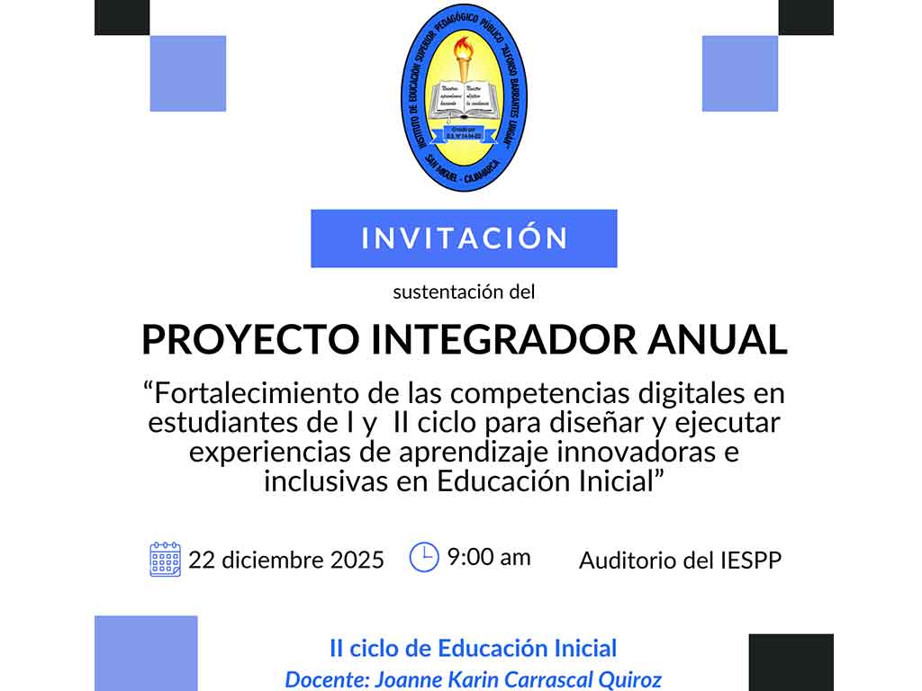 Invitación a sustentación del PIA denominado «Fortalecimiento de las competencias digitales en estudiantes de I y II ciclo para diseñar y ejecutar experiencias de aprendizaje innovadoras e inclusivas en Educación Inicial».